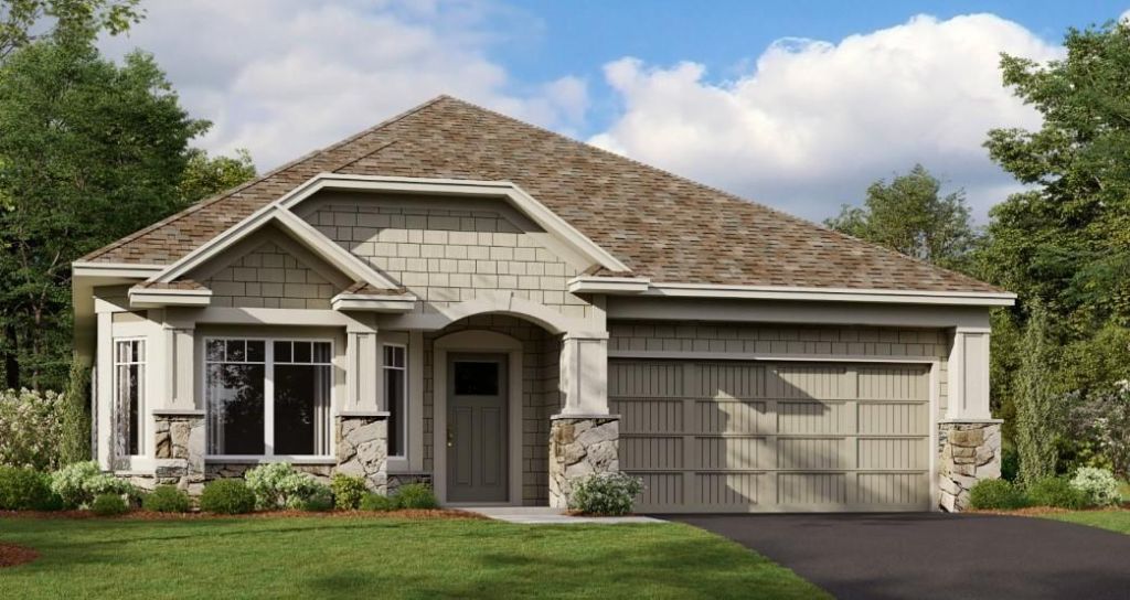 Welcome to Mississippi Landing- Single Level Association Maintained Lifestyle Living! Step inside this beautifully designed home at Mississippi Landing in Cottage Grove, MN! This thoughtfully laid-out one-level plan offers 2 bedrooms plus a den and 2 bathrooms. Functional living space perfect for a variety of lifestyles.At the heart of the home, you'll find a spacious kitchen with a large center island that opens effortlessly to the dining room and expansive family room?ideal for hosting gatherings or relaxing at home. Just off the dining area, a bright and airy morning room with overlooks the back patio, offering the perfect spot for morning coffee or quiet evenings. Beautiful backyard with privacy.The owner's suite is tucked in the back of the home for added privacy and features a generous walk-in closet and a spa-like en-suite bathroom with dual sinks and a tiled shower. A second bedroom and full bath are located at the front of the home, along with a versatile den that can be used as a home office, reading nook, or additional guest space.Additional conveniences include a laundry room just steps from the owner's suite and a 2-car garage with extra space. This model also showcases upgraded finishes and optional design touches throughout, giving you a true sense of what life could look like in a new home at Mississippi Landing.