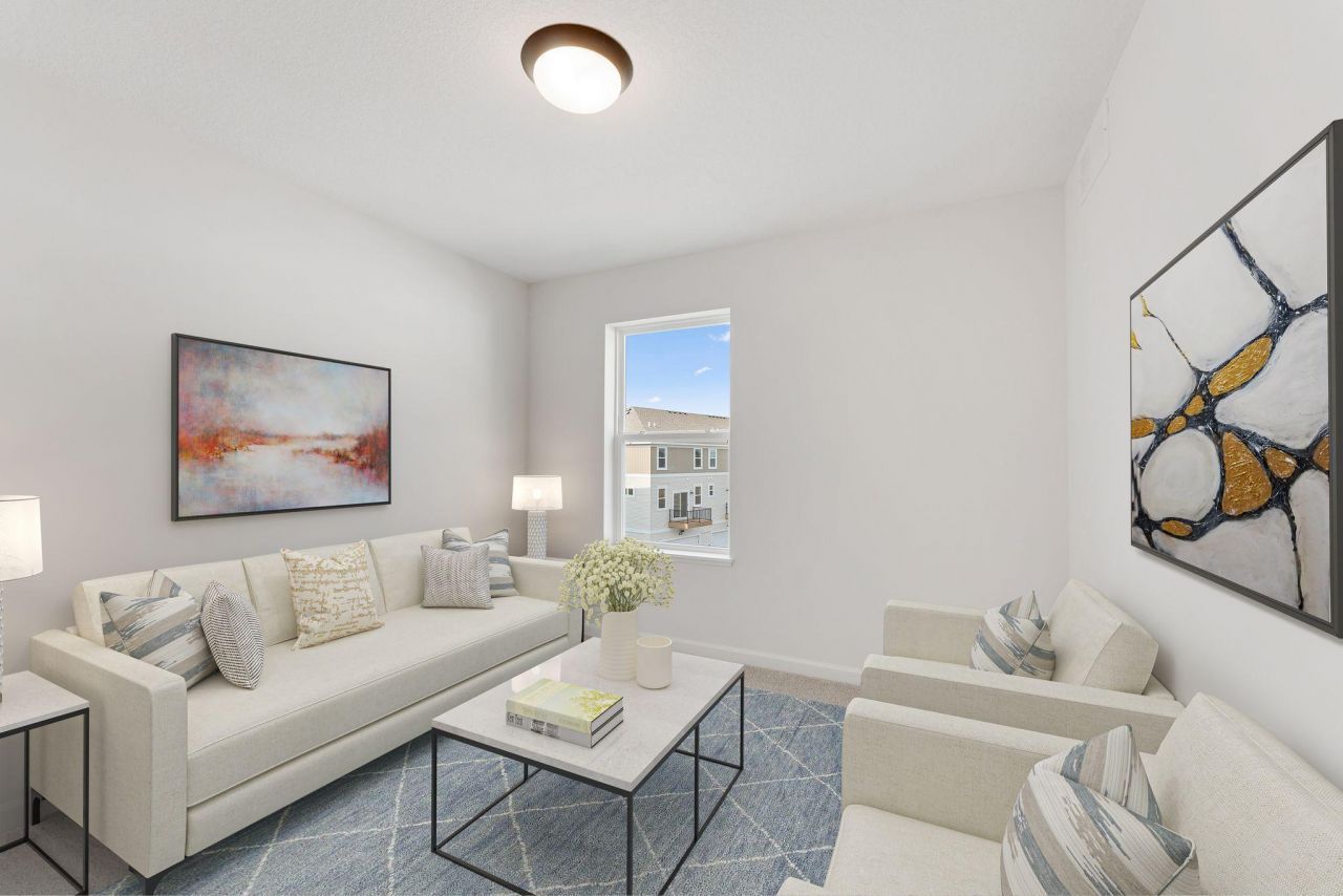 Step through the home into the foyer, leading to a recreation room that offers flexible use as a media room, home gym, or office space. The main living area on the second floor features an open-concept design, ideal for entertaining and relaxation. The family room flows seamlessly into the kitchen and dining room. The kitchen boasts an expansive island, perfect for meal prep and casual dining, while the dining room offers a lovely space for gatherings. A powder room and laundry room are also on this floor. The third floor is your private retreat, featuring all three bedrooms. The owner's suite is a highlight, with a walk-in closet, an en-suite bathroom with dual vanities. Bedrooms 2 and 3 are also located on this level, each with easy access to a full bathroom, making this layout perfect for families or guests.