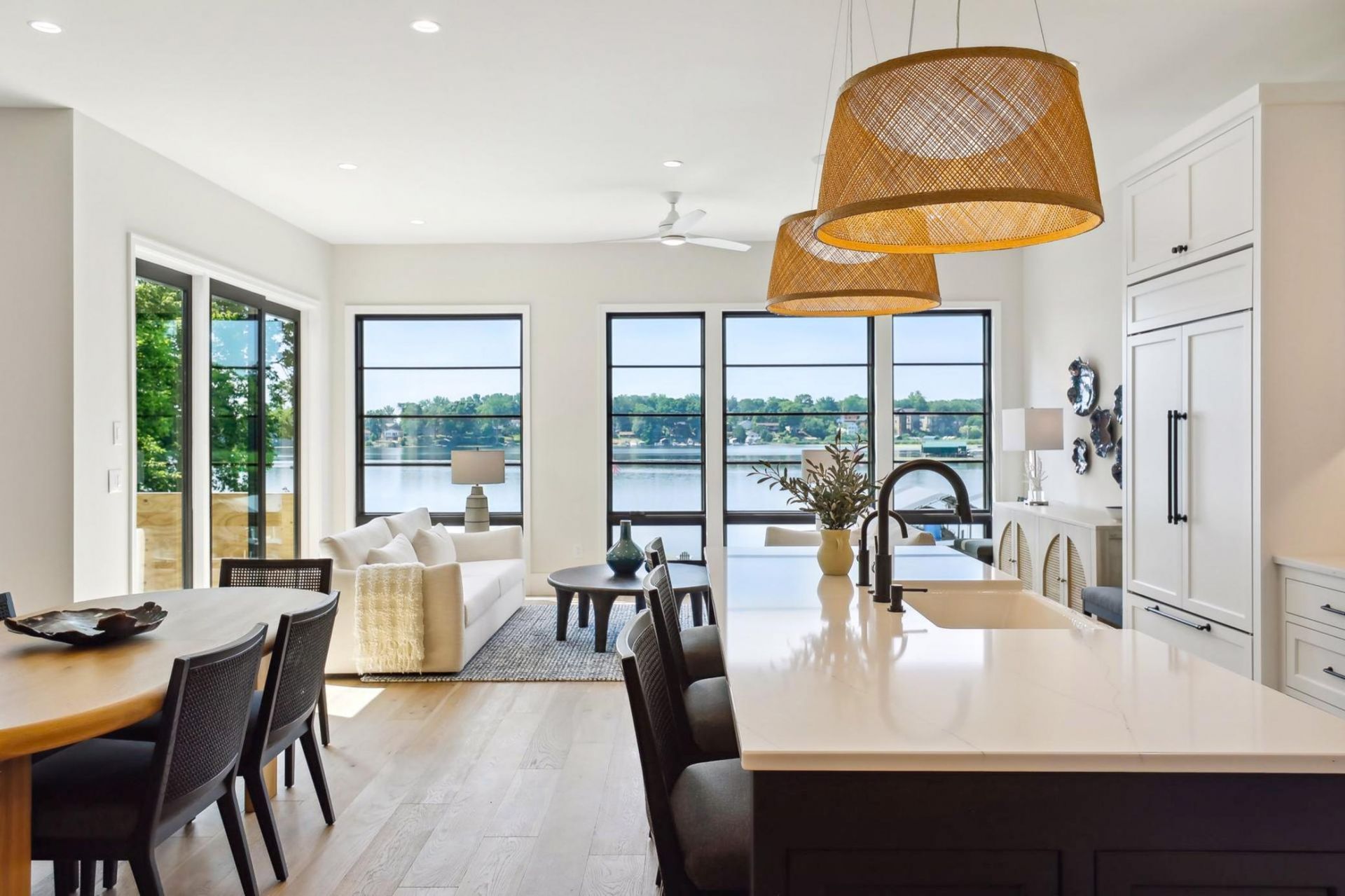 4467 Lafayette Lane presents a refined Lake Minnetonka twinhome residence designed by David Charlez Designs, built by ADOR Bespoke Homes, and finished by Witte Interiors. Set on the north shore of Black Lake in Spring Park, the home offers panoramic lake views, lake access, architectural presence, elevated interior selections, and thoughtful long-term livability in a low-maintenance lake setting.The main level is anchored by a beautifully appointed kitchen with Wolf and Sub-Zero appliances, generous living and dining spaces, a gas fireplace, and seamless connection to lake-facing outdoor areas. Throughout the home, elevated details include cerused engineered hardwood floors, enameled inset cabinetry, integrated lighting, curated designer fixtures, custom window treatments, oversized glass, smooth ceilings, and well-planned storage.The primary suite is generously scaled, with a custom closet system, heated tile floors, freestanding tub, and spa-like shower. The lower-level walkout expands the home with guest space, family room, secondary kitchen/laundry, storage, and exceptional lake views from the patio level. An elevator, heated three-car garage, smart home systems, whole-house filtered water, and dog-wash plumbing add everyday comfort and convenience.Outdoor living is a major highlight, with a level lot requiring no stairs to the lake, approximately 60 feet of shoreline, sandy beach, rip rap, lake-facing patio and deck areas, and a covered boat slip. The protected Black Lake setting offers a quieter Lake Minnetonka experience with less exposure to fast boat traffic, while the dead-end street provides privacy with no through access. The property is adjacent to the lovely Lake Minnetonka Shores / Presbyterian Homes campus and park-like grounds. Seller indicates dock may remain in year-round, offering meaningful seasonal convenience and potential savings.Adjacent 4469 Lafayette Lane is also available separately, creating a rare side-by-side ownership opportunity on Lake Minnetonka for extended family, guests, multi-generational living, or future flexibility.