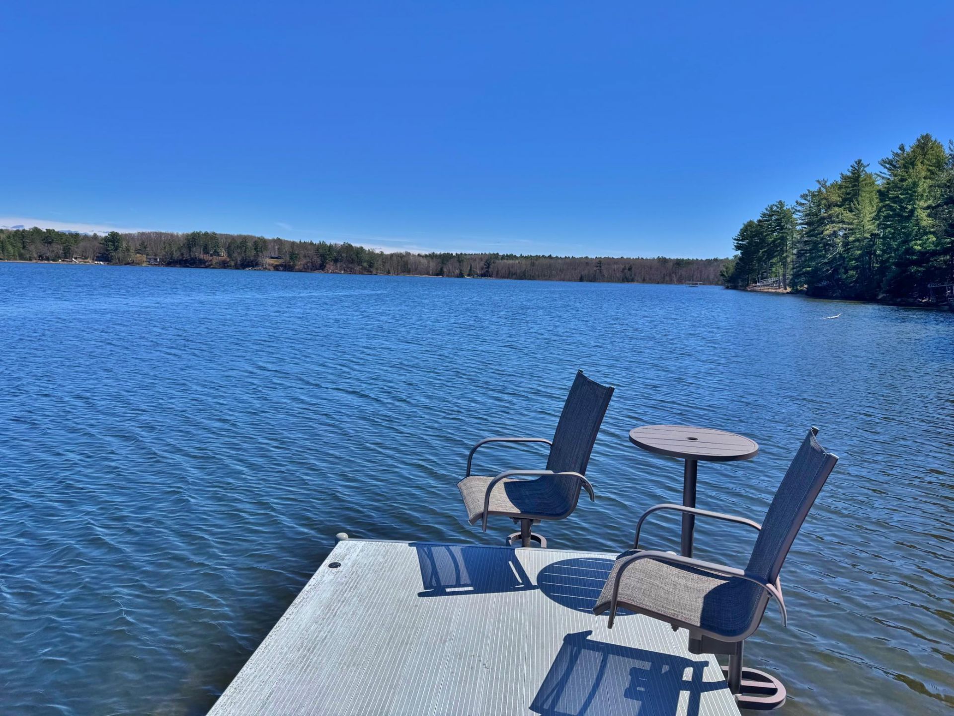 Lac Courte Oreilles-Exceptional estate property with 10.8 acres and a total of 320 feet of level sandy shoreline on one of the Hayward area's most treasured lakes. Enter through the paved drive and lighted stone pillars to discover a setting that feels both private and memorable. As the drive winds through the property, it leads to the 4BR/2.5BA main home at the lakeshore. Positioned on 200 feet of frontage with beautiful sandy shoreline for swimming and waterfront enjoyment, the extensively remodeled home offers open living spaces with a warm, inviting feel, a spacious kitchen with custom tin-wrapped island and ample storage, dining area with a wall of windows overlooking the lake, living room with gorgeous stone fireplace (1 of 4), and a luxurious main-floor primary suite with fireplace, sunroom, spacious bath, walk-in closet, and laundry. The lower level offers comfortable private guest spaces including a family room with gas fireplace, 3 bedrooms, full bath, and a wine room with wet bar and mini-fridge. With a full renovation in 2017, the main home pairs beautifully with the guest home built that same year and situated just steps away, yet on its own legal lot. The delightful 2BR+loft/2BA guest home is ideal for family and guests, with one private suite, a second bedroom with adjacent bath, loft with 4 twin beds, and laundry in the large unfinished basement. Exterior features include an attached (to main home) 2-car garage with sauna and laundry, detached 2-car garage, 36x36 outbuilding, gazebo, storage shed, composite decks, two generators, irrigation, and a new stone lakeside firepit. The adjoining 2.64-acre lot with 118 feet of shoreline offers valuable long-term options, as does the separate 2+ acre off-water lot across Hwy K. The combination of parcels and improvements supports continued use as a family compound while offering future possibilities. Most furnishings are available for purchase separately, allowing for a largely turn-key opportunity.